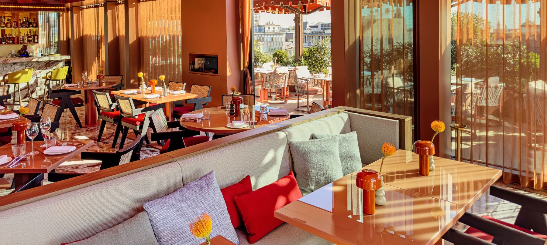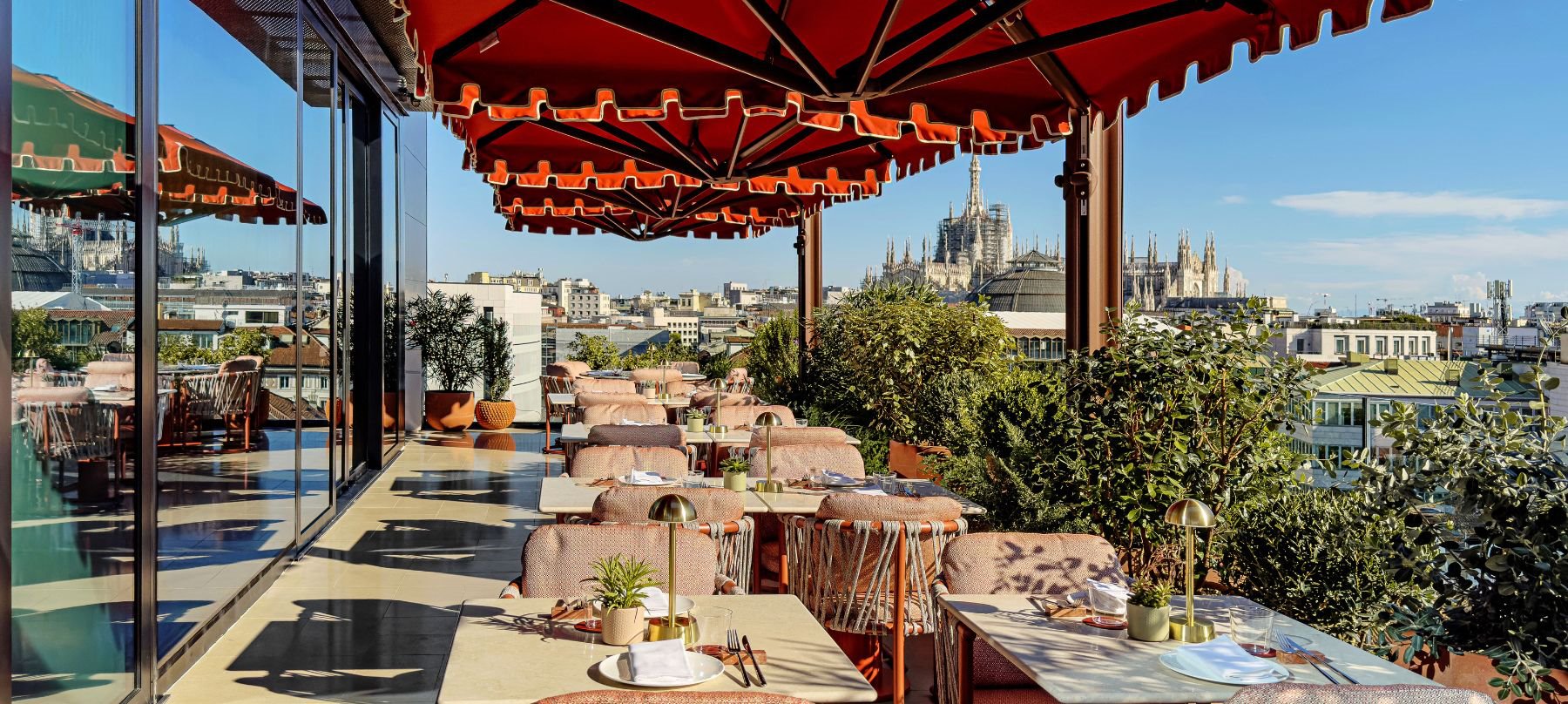 Etereo è una destinazione esclusiva con piscina e vista panoramica a 360° nel cuore della città. Puoi sederti all'interno o su due terrazze all'aperto, godendo di panorami iconici come il Duomo, il Teatro alla Scala e il Castello Sforzesco. Il menù propone piatti da condividere, accompagnati da cocktail personalizzati che celebrano l'arte, il design e la moda di Milano.